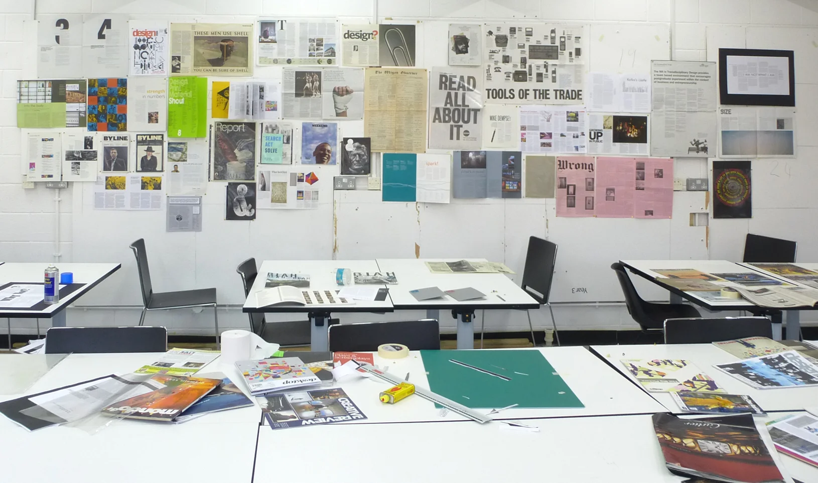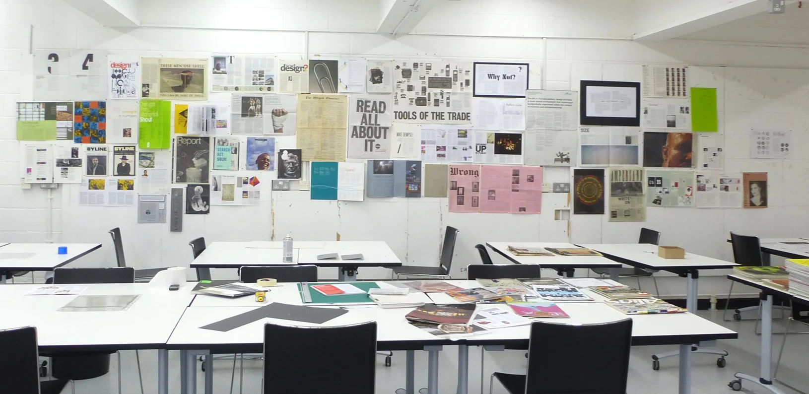 The wall of visual inspiration will remain up for the first week of the project for all our Year 1 students to study closely and use as a 'touchstone' for their page layouts.