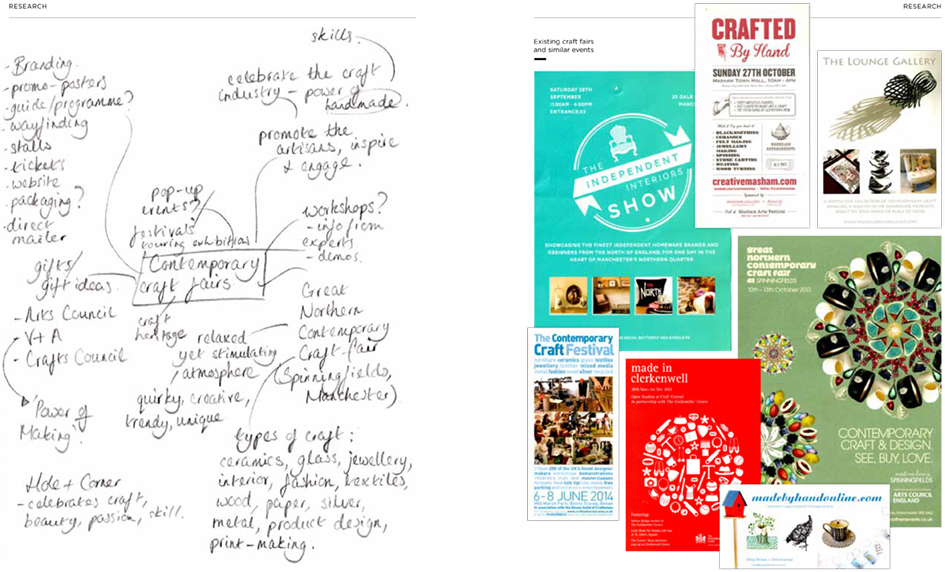 Here we feature Jessie Frogertt’s ‘Hand Made’ project from 2014. The brief was to brand and promote a new contemporary craft fair selling bespoke handcrafted wares.